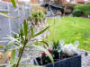 -Garten eingefriedet (Zaunanlage mit Beleuchtung und Hecke)